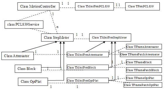 電機對象類之間的關(guan) 係如圖2。MotionController:對PCL839卡封裝;StepMotor:同MotionController是多對一的Client/Service關(guan) 係。MotionController