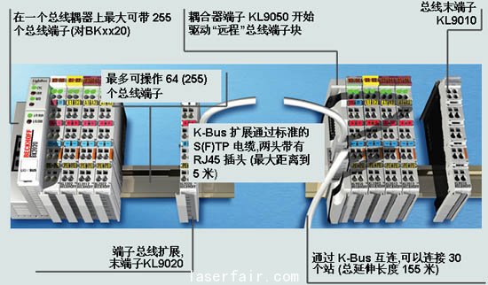 連接 64 個(ge) 總線端子模塊 ( 使用 K-Bus 擴展接口 KL9020, KL9050 可連接255個(ge) )