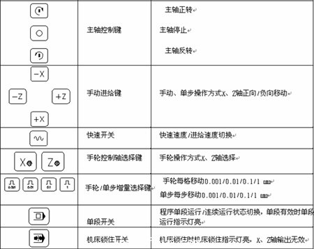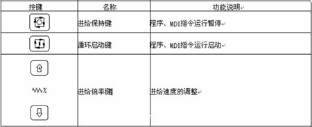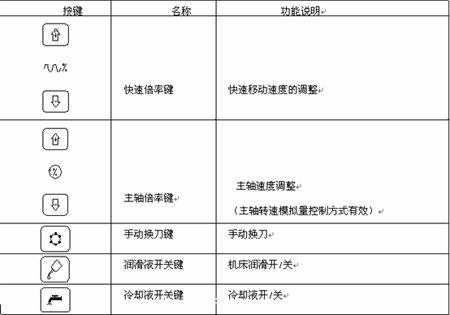 其機床麵板上麵的按鍵的含義(yi) 如表1.5-a所示: