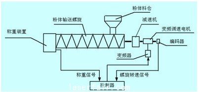 (4)計量螺旋。氯化鉀是粉粒狀物料(簡稱粉體(ti) )。計量螺旋是對粉體(ti) 進行輸送、動態計量和流量控製的設備。本設計采用萬(wan) 息得公司的lsc型計量螺旋(螺旋電子稱)。