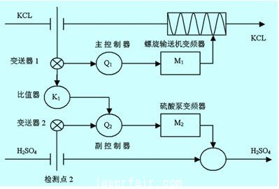 圖1 kcl-h2so4雙閉環流量比值控製係統原理圖