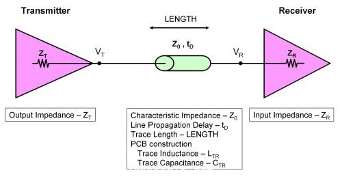 就傳(chuan) 輸線路而言,我們(men) 可以從(cong) IC IBIS 模型提取IC的發射器輸出阻抗 (ZT, Ω)和接收器輸入阻抗(ZR, Ω)。許多時候,IC 廠商產(chan) 品說明書(shu) 中並沒有說明這些集成電路 (IC) 規範,但是您可以通過IBIS模型獲得所有這些值。