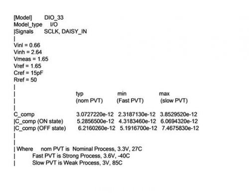 IBIS 模型為(wei) PCB 設計人員提供了一些線索,讓他們(men) 可以在轉到樣機設計以前進行板模擬。如果您知道了查找的方法,IBIS 模型就可以為(wei) 您提供所有引腳的特性阻抗和電容。評估工作的下一步是確定每個(ge) 緩衝(chong) 器的輸入/輸出電阻,我們(men) 將在下次為(wei) 您介紹。
