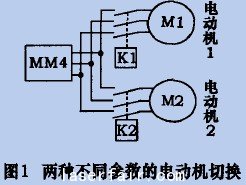 以上3種工作狀態在同一時刻隻允許有一種運行,互不幹擾,這樣才能保證變頻器的正常運行。這就要求要從(cong) 外界通過變頻器的數字量輸入介入來控製兩(liang) 種驅動圖1兩(liang) 種不同參數的電動機切換電動機參數的切換。在變頻器的運行或準備狀態階段利用一個(ge) 或多個(ge) 外部信號同時改變參數組,從(cong) 而達到一台變頻器控製兩(liang) 台及多台電動機,如圖1所示。