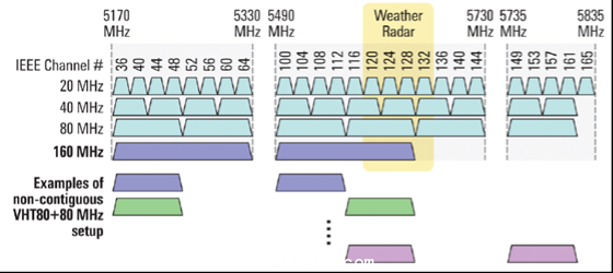 圖1. IEEE 802.11 ac在美國地區的頻帶分布