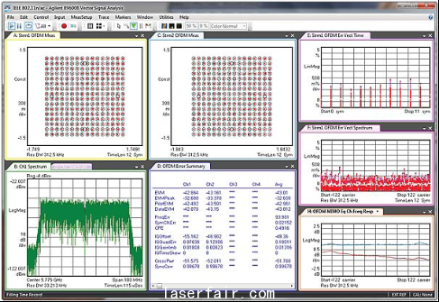 802.11ac的一些新的特性使得測試這些產(chan) 品出現新的挑戰,256QAM技術要求在接收和發射電路中有良好的矢量誤差(EVM),在星座圖測量中要求也更為(wei) 複雜、精確。矢量信號分析設備,安捷倫(lun) 89600 VSA軟件提供了詳細分析802.11 ac信號矢量信號的分析,以便洞察其信號出錯情況,做出更好的調整和更改,同時還支持4x4的MIMO測量。