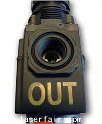 利用Synrad激光器在一個(ge) 著色的鋅空氣閥門的出氣口上打標。打標設備由一個(ge) FH Flyer打標頭、一個(ge) 25W激光器和WinMark Pro激光打標軟件構成,打標頭配備了125mm的聚焦鏡,可提供180μm (0.007”)的光斑。這種尺寸的光斑擁有足夠的功率密度使油漆層汽化,並能打出高清晰度的標識。