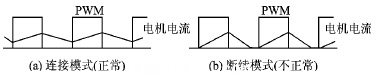 設計選用150 W MAXON RE40電機。在12 V輸入下,無負載的速度是6 920 r/s。最大連續電流是6 A。PWM時基信號對電機噪聲有很大的影響(因為(wei) 人耳一般能聽到的聲波的頻率範圍是20 Hz~20 kHz),同時影響電機的表現性能。要防止整個(ge) 周期中電流過零(就是通常所說的不連續的電流狀態,當電機輕載時),如圖5(b)所示。這種不連續電流會(hui) 導致扭矩轉速曲線非常陡,在電機中將產(chan) 生某種脈衝(chong) ,使電機轉子產(chan) 生更大的噪聲,本電路使用MAXON電機,就是為(wei) 了獲得連續的電流模式,所選擇的PWM脈衝(chong) 頻率是8 kHz。
