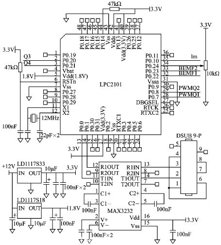速度和電機的扭矩大小是依據電機旋轉產(chan) 生的磁場強度來控製的,而電機的旋轉能量是依賴於(yu) 通過電流大小來控製的,因此調整電機轉子的電壓和電流可以改變電機的速度。本電機速度的控製是根據LPC2101微控製器的PWM信號的變化而產(chan) 生的。