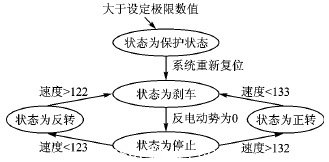 軟件部分采用C語言編寫(xie) ,使用Keil μVision(ARM7 RealView V3.0)開發環境。主函數實現如下功能:讀取電位器數值來調整速度和電機方向;讀取電機反電動勢電流;設定PWM占空比和控製Q1~Q4 MOSFET輸出;執行RS232通信。圖11表示控製係統流程。使用 RS232接口每200 ms給PC端計算機發送電機速度和電流、電壓信息。電機控製軟件部分狀態機如圖12所示。狀態處理是在主程序循環中處理的,LPC2101的定時器2用於(yu) 產(chan) 生PWM信號。在每個(ge) PWM信號中斷子程序進入後,可以通過改變占空比來調整既定電機速度並設置MOSFET輸出控製 Q1~Q4。定時器0用於(yu) 10 ms的係統定時。
