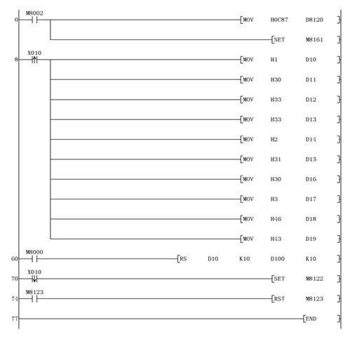 使用無順序協議需要對通訊規格D8120 進行設定。其中包含波特率,數據長度,奇偶校驗,停止位和協議格式等。這裏對D8120設置如下: