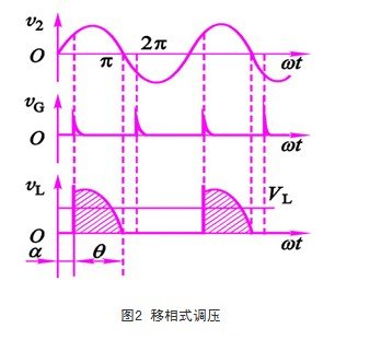 (2)q:導通角。每半個(ge) 周期晶閘管導通角度。控製角越大,導通角越小,它們(men) 的和為(wei) 定值α+q=p。它改變交流電的平均電壓,其平均電壓是可控的、平滑變化的。