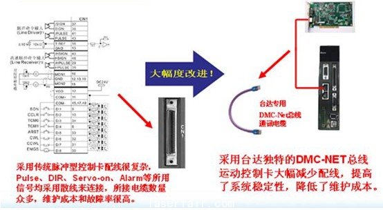 ⑴ 配線簡單,獨特的台達DMC-NET, 大大減少控製端配線,減少了係統的可靠性,降低了維護成本,如圖4。