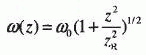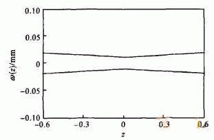 圖2 光束束腰半徑(ω(z))在焦點附近隨傳(chuan) 輸方向變化示意圖