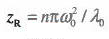 通常的,如果知道激光中心波長,透鏡的焦距f和入射光在透鏡前表麵處的束腰半徑ω,就可以得到瑞利長度ZR,瑞利長度的表達式為(wei) :