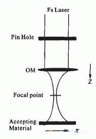 激光整形技術是指在激光腔內(nei) 或腔外采用光學元件改變光束形態實現光束整形。飛秒激光脈衝(chong) 整形有別於(yu) 傳(chuan) 統整形概念,主要是在保留原有高峰值功率特性基礎上,在光路中引人擴束器、濾波器以及衍射模板等光學器件,達到縮小聚焦尺寸、去除高斯光束周圍熒光成分、減少脈衝(chong) 形變及多種形狀加工等目的。常用的是空間濾波和掩模控製技術。空間濾波是實現對光束邊緣熒光的屏蔽效用,實現聚集點光學質量的改善,掩模控製是通過掩模形狀來實現對脈衝(chong) 的調製,以達到確定的加工目的。