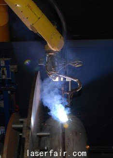 第二個(ge) 機器人用於(yu) 焊接已經準備好的型材,采用6軸FANUC Robotics ARC Mate 120iC,配有單軸機械臂。該單元采用高解析度攝像機觀察焊口,並在機器人第6軸上安裝了手柄控製滑動係統,用於(yu) 在焊接工藝過程中調節焊槍。