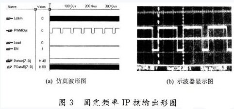 END IF; END IF; 軟核的仿真波形及示波器輸出波形如圖3所示。