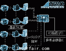 上麵框圖中的獨立型數字運動控製器可以采用英國 Trio 公司的 MC202,EURO205X,MC206,MC224 等獨立型的運動控製器,這些控製器采用工業(ye) 專(zhuan) 用的 32bit ,120MHz~150MHz 的最新微處理技術,融合最新的控製理論及其網絡控製技術,可選用不同的控製器可控製 1~24 個(ge) 軸。可以用 0~+/-10v 的模擬量電壓輸出和編碼器反饋形成全閉環控製,來控製伺服電機。也可以控製步進電機,變頻器,氣動,液壓伺服,或者是這幾種的任意結合。Trio 帶有可編程控製的 I/O, 也可根據設備需要進行擴展 ( 最多 512 個(ge) I/O) 。