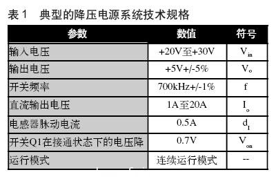 下列公式用於(yu) 計算降壓變換器所需的電感值。L1=Vo(1-Vo/(Vin-Von))/(f*dI)