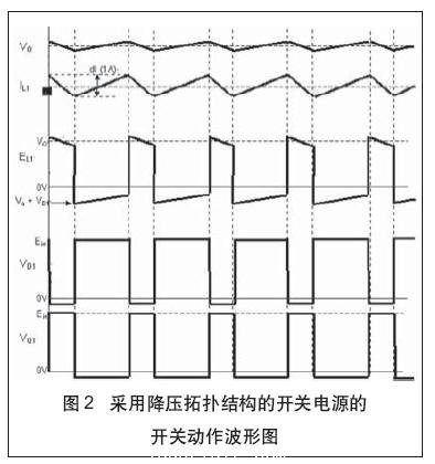 在達到預定的電壓或電流限值時,控製集成電路將開關(guan) 斷開,從(cong) 而使電感周圍的磁場衰減,並使偏置二極管D1正向導通,從(cong) 而繼續向輸出電路供給電流,直至開關(guan) 再度接通。這一循環反複進行,而開關(guan) 的次數由控製集成電路來確定,並將輸出電壓調控在要求的電壓值上。圖2所示為(wei) 在若幹個(ge) 開關(guan) 循環周期內(nei) ,流過電感器和其它降壓拓撲電路元件上的電壓和電流波形。