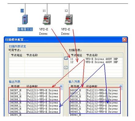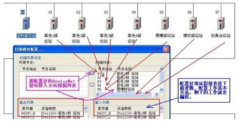 用鼠標左鍵雙擊DNET Scanner主站模塊圖標,可以進入主站模塊的“掃描模塊配置”工具,設定從(cong) 站的掃描列表,以及寄存器的對應設備(地址)映像表: