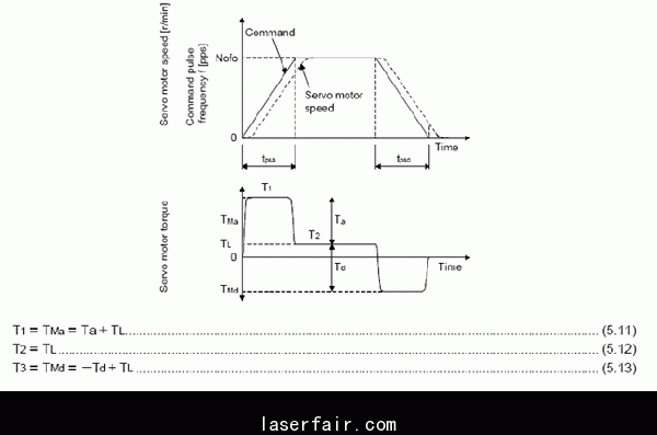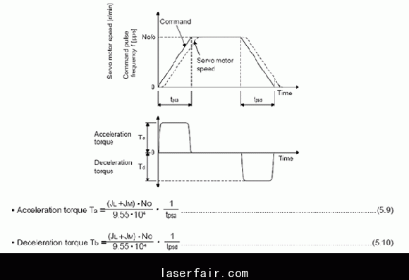 圖3中的馬達速度No對應圖1中的速度指令(Command speed ),加減速時間tpsa和tpsd對應圖4中的實際加減速時間。已知了負載慣量和電機慣量,就可以計算出加減速力矩Ta和Tb。由圖3所示。
