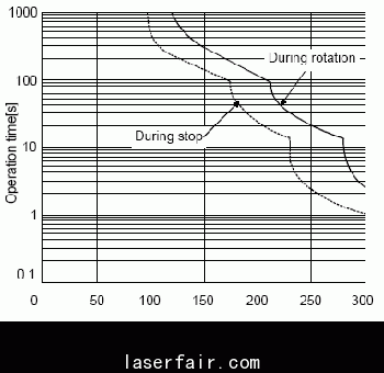 以MR-J2S-10A~MR-J2S-100A過載保護特性圖為(wei) 例進行說明,當伺服電機輸出力矩為(wei) 200%額定力矩時,如上圖所以電機運行大約100s後伺服放大器內(nei) 的IPM就會(hui) 因為(wei) 過熱而出現過載報警。