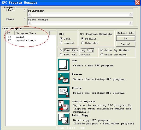 共有兩(liang) 個(ge) SFC程序,main1為(wei) 定位主程序,speed change為(wei) 改變速度的程序
