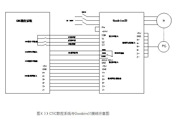 數控車床主軸電機需要變頻器在起停時要快且平穩,電機無尖叫聲,無明顯抖動。轉矩響應要快,穩速精度要高;抗幹擾能力強,同時維修要方便。電機最大轉速要求達到3000r/min,現場速度脈衝(chong) 編碼器安裝在車床主軸上麵,車床主軸和主軸電機之間通過同步皮帶連接,且皮帶輸入輸出帶輪直徑比值為(wei) 1:1。同時,車床主軸要求實現定位控製,當一個(ge) 工件加工好後,車床主軸要回到初始位置,此時,將加工好的工件取下,重新裝上一個(ge) 待加工工件。針對上述工藝要求,我司特選用高性能閉環矢量主軸定位專(zhuan) 用變頻器Goodrive35,功率等級為(wei) 4KW,型號為(wei) GD35-004G-4-A1。