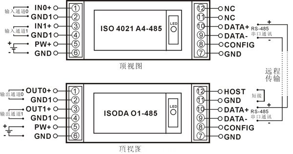 圖7 ISO DAO與(yu) ISO 4021的RS-485通訊接線圖
