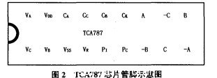 1998年,江蘇索普公司整流係統改造時,生產(chan) 廠家對此作了改進,減少了控製環節,每台機組隻有兩(liang) 塊控製板,一塊集中了電源、觸發、PID調節、過流保護,另一塊主要是信號,有載開關(guan) 的升、降檔控製,省略了相控角越限,而增加了對有載開關(guan) 的自動控製和主電源缺相的監測,控製的自動化程度提高。特別是觸發部分,由於(yu) 采用了單芯片6脈衝(chong) 集成電路塊TCA787,大大簡化了觸發電路。整個(ge) 觸發部分隻有“信號輸入一移相一TCA787一場效應管輸出”4個(ge) 環節,電路結構簡單,由於(yu) 場效應管的使用,省略了脈衝(chong) 功放回路,簡化了控製環節,而其他環節則變動不大。該係統控製也基本滿足生產(chan) 的需要:穩流精度≤±0.5%。觸發器形成脈衝(chong) 的特點:範圍0~170。,脈衝(chong) 幅值1OV,寬度12。,脈衝(chong) 前沿陡度≤1s。TCA787芯片管腳示意圖見圖2。