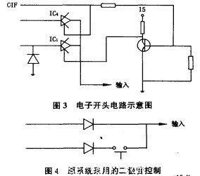 該控製係統的特點在於(yu) 其集成化程度高、組件少、線路相對簡單。①在電流調節方麵,設置了兩(liang) 組:一組通過內(nei) 外給定的切換來控製電位的改變;另一組通過一路給定與(yu) 反饋的比較來實現控製電位的改變;②由於(yu) 各環節基本集中在一塊板上,通過卡件連接的少,此控製板上舍棄了原係統的卡簧連接方式,而改為(wei) 端子接線方式,這就大大減少了接觸方麵的故障;③在給定電位的輸入上,采用了電子開頭電路(見圖3)。兩(liang) 種線路比較看,原係統簡單,新係統較複雜,且控製受集成塊電源的影響,不很可靠,電流在實現切換過程中無擾動性能方麵不如原係統。④廠家在係統電源部分的設計也有所創新,但電路的設計不夠精確,元件的選擇有偏差,在實際運行中,會(hui) 因電源部分的個(ge) 別元件損壞而影響電源的正常工作,特別是當外線電壓出現波動時,影響電源部分的輸出,甚至損壞電源。內(nei) 外給定電位受IC4的影響,三端運放控製、三端允許端電位的變化決(jue) 定內(nei) 外給定的作用。而原係統則采用了二極管控製(見圖4)。