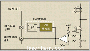 當控製器上有“輸入采集”引腳時,我們(men) 也可以在設計中加上隔離式模擬放大器,通過數字轉換來得到相電流。用V/F或者電壓/PWM轉換器把模擬信號轉換成數字信號。模擬信號可用數字式光耦合器通過隔離電路傳(chuan) 到控製器。與(yu) 模擬隔離方案相比,V/F轉換器+光耦合器方案成本較低。