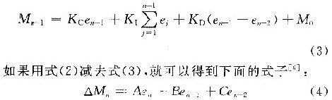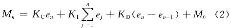 由式(4)可知,增量式PID算法建立在對普通PID算法進行改進的基礎之上。它克服了位置式PID對所有過去狀態的依賴,計算機控製器輸出的隻是增量,所以誤動作的時候對輸出的影響比較小,必要的時候可以使用邏輯判斷的方法將這種影響消除,因而不會(hui) 嚴(yan) 重影響係統的工況。由於(yu) 算式中不需要對誤差進行累加,控製增量△Mn的確定僅(jin) 與(yu) 最近的n,n-1,n-2次的采樣值有關(guan) ,較容易的通過加權處理而獲得比較好的控製效果。