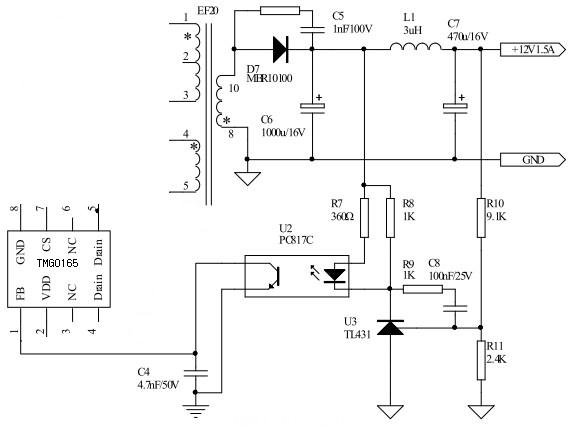通常光耦與(yu) TL431一起使用。下麵是led電源驅動芯片(開關(guan) 電源芯片)的部分電路。兩(liang) 電阻串聯取樣到431R端與(yu) 內(nei) 部比較器進行比較。然後根據比出的信號再控製431K端(陽極接光耦那一端)對地的電阻,然後達到控製光耦內(nei) 部發光二極管的亮度。(光耦內(nei) 部一邊是一發光二極管,一邊是一光敏三極管)通過發光的強度。控製另一端三極管的CE端的電阻也就是改變了led電源驅動芯片(開關(guan) 電源芯片)檢測腳的電流(1腳:電壓反饋引腳,通過連接光耦到地來調整占控比)。根據電流的大小,led電源驅動芯片(開關(guan) 電源芯片)就會(hui) 自動調整輸出信號的占空比,達到穩壓的目的。