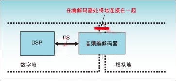 在高速視頻係統中,保持回路短的目的意味著視頻地不能被隔離。而必須被隔離的音頻地,絕不能在數據輸入點處短接到數字地上,如圖2所示。