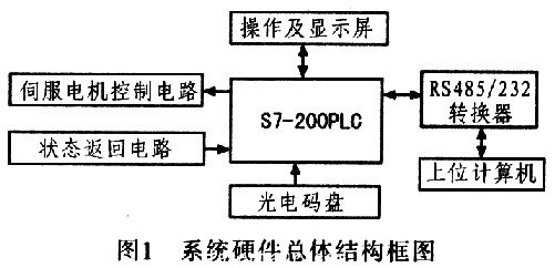該係統是以PLC控製器為(wei) 核心的位置控製係統,包含伺服電機、光電編碼器、操作及顯示屏、上位計算機、伺服電機控製電路和狀態返回電路。其硬件總體(ti) 結構框圖如圖1所示。