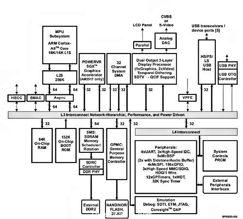 圖2:基於(yu) Cortex-A8的Sitara AM35x係列MPU模塊圖