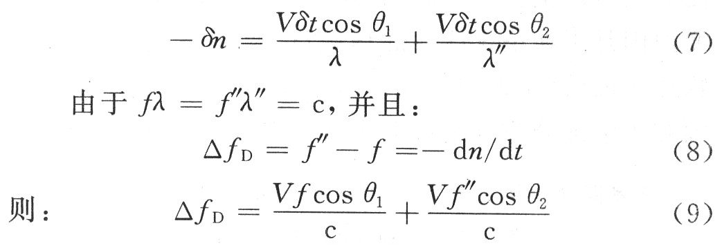 如圖3所示,S為(wei) 光源,頻率為(wei) f,光速為(wei) c,O為(wei) 光波接收器件,P為(wei) 速度為(wei) V的運動物體(ti) ,且能反射光波,當波源和接收器保持相對靜止時,假設n是沿從(cong) 光源到接收者光路上的波數或周期數,則由圖3可知,在無限小的時間間隔δt中,假定P移動到P''''''''的距離為(wei) Vδt,則在光程中周期數將減少為(wei) :