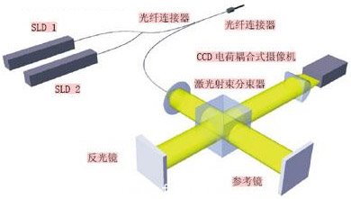 Fraunhofer研究所研發的這種檢測係統基於(yu) 短波激光幹涉原理,主要由兩(liang) 個(ge) 相幹性激光部件組成。其中的第一個(ge) 是純光學的全光纖技術元件(SLD1),第二個(ge) 則是Michelson激光幹涉器(SLD2)。這種檢測儀(yi) 器的檢測距離大約為(wei) 500μm,清晰度達1nm的檢測範圍約80μm。