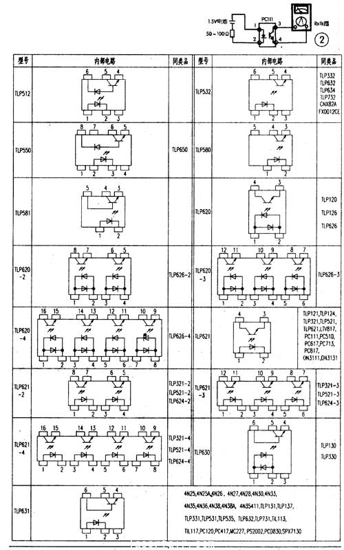 二、各種光電耦合電路的內(nei) 部結構為(wei) 了讀者查找各型號的光電耦合器內(nei) 部結構,特附下表中所示電路圖。