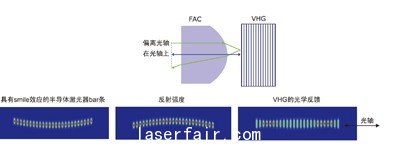 圖2. Smile效應對采用體(ti) 全息光柵波長穩定技術的半導體(ti) 激光器bar條的光學反饋的影響。