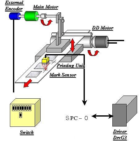 SPC007控製DD馬達的行走長度和速度,印版上下印色;二次套印時,色標傳(chuan) 感器掃描Mark點,通知SPC007以追Mark模式控製DD運動,印版上下套色。行走距離和速度的設定可由上位指撥開關(guan) 或人機界麵來完成。比較舊型機種,節省了人力,尤其針對套色問題,完全是由控製器來完成。避免了機械誤差所造成經常作機械調整的工作,大大提高了工作效率。並且維護簡單,設備安全性好。