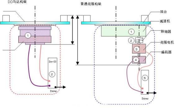 圖2 DD馬達與(yu) 伺服+減速機構架比較