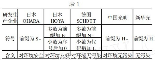 世界上的一些主要公司在環保光學玻璃方麵的一些表示方法如表1所示。