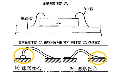 焊線接合首先將芯片固定在合適的基板或導線架(Lead Frame)上,再以細金屬線,將芯片上的電路與(yu) 基板或導線架上的電路相連接如圖所示。