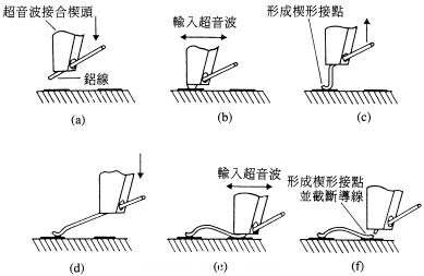 第二種壓焊方法是楔形製程,這種製程主要使用鋁線,但也可用金線,通常都在室溫下進行。楔焊將兩(liang) 個(ge) 楔形焊點壓下形成連接,在這種製程中沒有球形成。鋁線焊接製程被歸為(wei) 超聲波線焊,形成焊點隻用到超聲波能、壓力以及時間等參數。