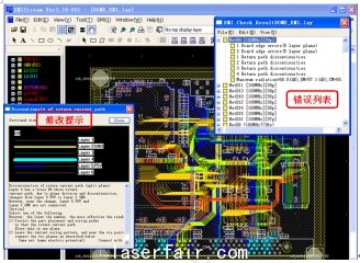 圖3:檢查結果以對話框的方式顯示出來,出錯網絡在PCB版圖上將高亮度顯示,所有錯誤用紅圈在網絡上標出。