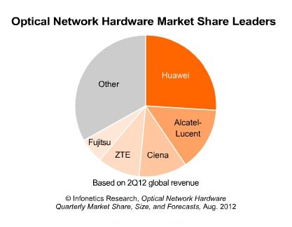 從(cong) 廠商來看,華為(wei) 本季度擴大了領先地位,部分原因是亞(ya) 太運營商開支的增長。阿爾卡特朗訊收入增長了5%,保持了第二的地位,美國光纖設備商Ciena位居第三位。